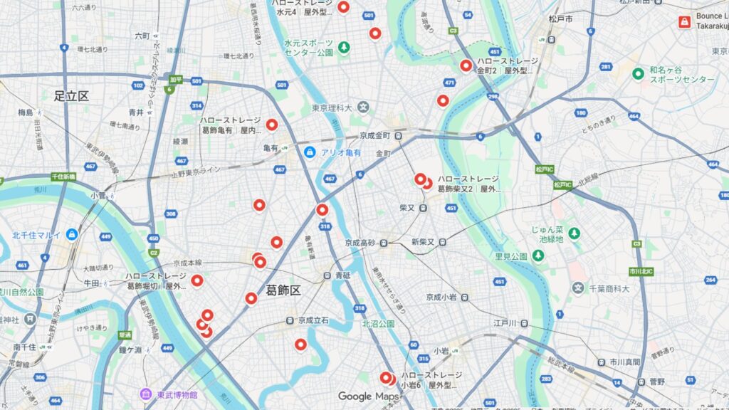 1. 1位、新小岩駅周辺にあるトランクルーム「ハローストレージ」をGoogleマップで見る