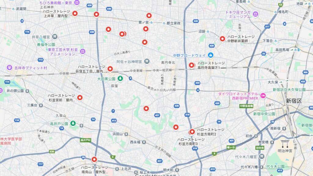 1位、荻窪駅周辺にあるトランクルーム「ハローストレージ」をGoogleマップで見る
