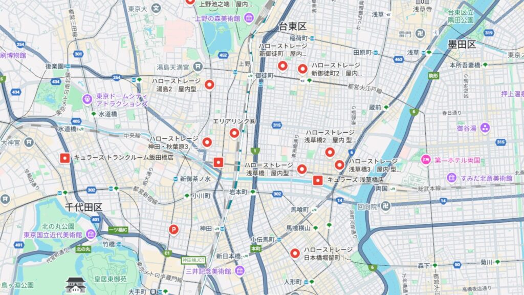 1位、千代田区周辺にあるトランクルーム「ハローストレージ」をGoogleマップで見る