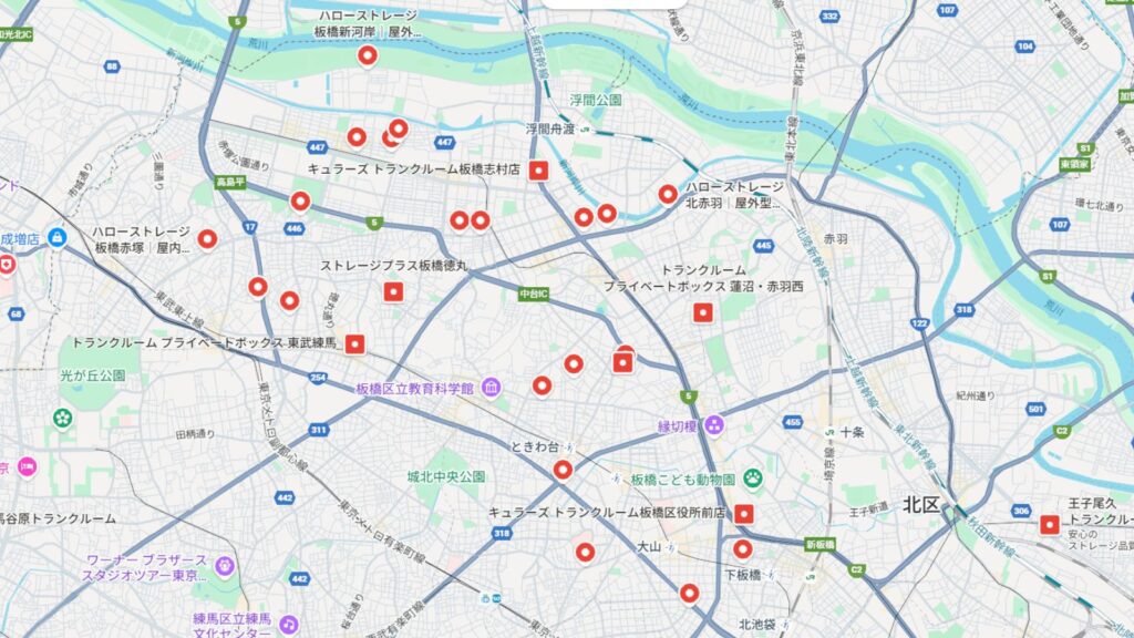 1位、板橋区周辺にあるトランクルーム「ハローストレージ」をGoogleマップで見る