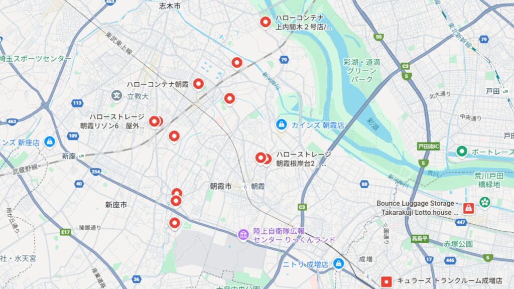 1位、朝霞市周辺にあるトランクルーム「ハローストレージ」をGoogleマップで見る
