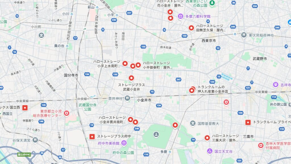 1. 1位、小金井市周辺にあるトランクルーム「ハローストレージ」をGoogleマップで見る