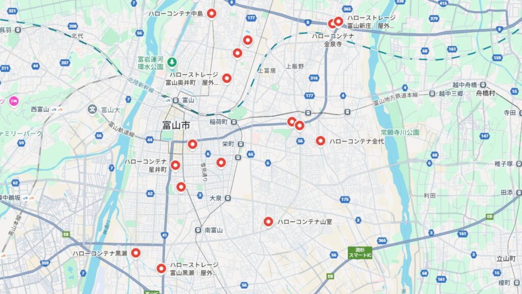 1位、富山市周辺にあるトランクルーム「ハローストレージ」をGoogleマップで見る