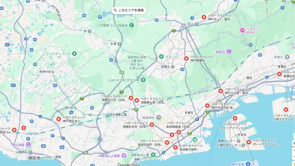 1位、神戸市周辺にあるトランクルーム「ハローストレージ」をGoogleマップで見る