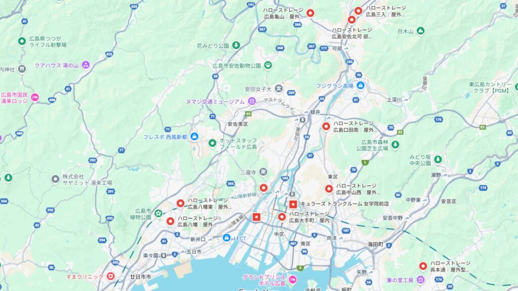 1位、広島市周辺にあるトランクルーム「ハローストレージ」をGoogleマップで見る
