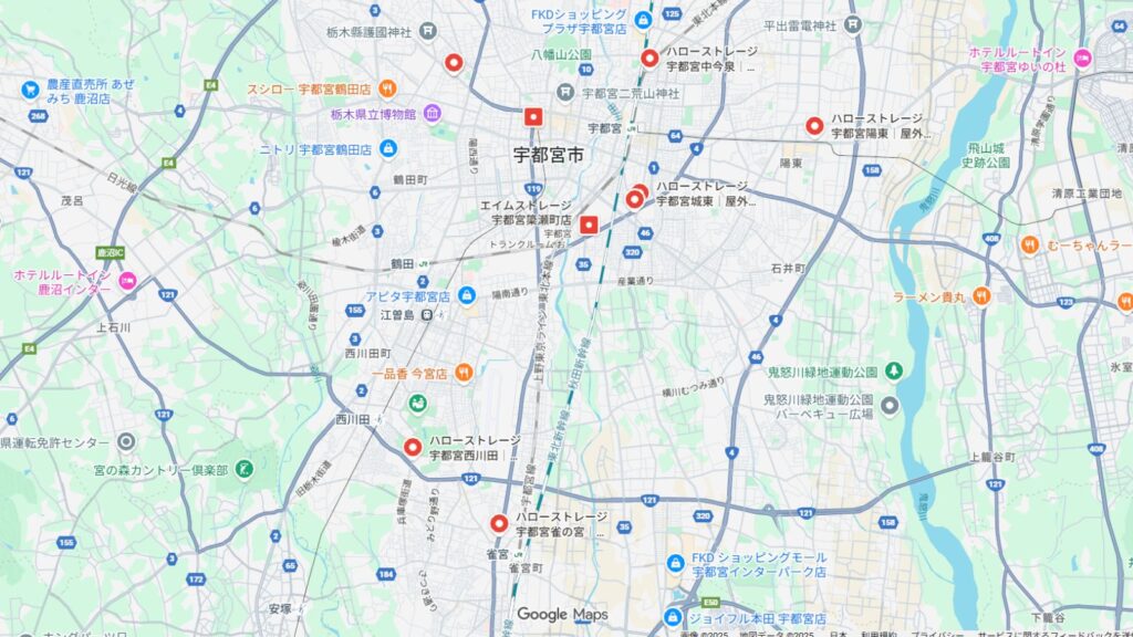 1. 1位、宇都宮市周辺にあるトランクルーム「ハローストレージ」をGoogleマップで見る